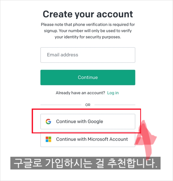 1-3 그럼 다음 화면에서 구글 메일로 가입하시는 것을 추천드립니다.